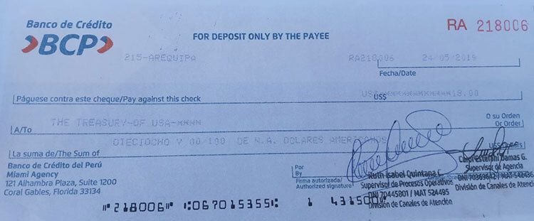 - Payable to: “The Treasury of the USA”